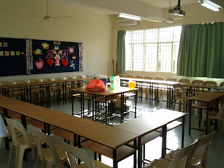排美美了的课室 食物放中间 xD